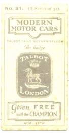 (1930s) Veteran and Vintage Cars 10 cards known. |