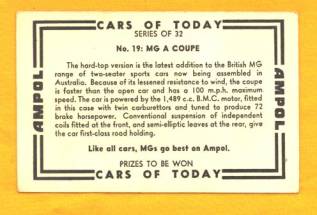 (1958) Cars of Today 32 numbered cards measuring 76mm x 48mm. Following the close of the contest, cards were issued with the phrase PRIZES TO BE WON blacked out. |