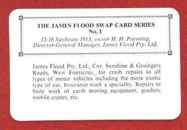 (1968) James Flood Swap Cards 180 cards relating to early motoring. The cards are numbered, but there are omissions in the numbering sequence. First sequence is 1 through 72. Numbers 73 through 100 are omitted, and numbers resume with 101 through 208 inclusive. Various albums were also released. |