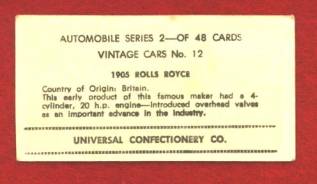 Automobile Series 1 48 cards marked Riviera Confectionery |