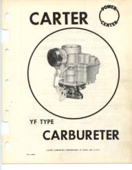 YF - Service procedure. Factory step by step service disassembly, adjustment, and reassembly illustrated instructions for the Carter type YF carburetor. 8 1/2 x 11 inches by 4 pages. Excellent condition. Stock number Lit_0995. Price $10.00. |