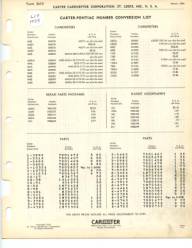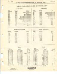 Carter - General Motors Corporation (all divisions) and General Motors Corporation - Carter parts number interchange printed in 1960. Carburetor numbers and individual part numbers interchange. 8 1/2 x 11 inches by 16 pages. Excellent condition. Stock number Lit_1020. Price $95.00 |