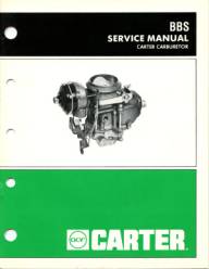 BBS - 1983 Carter carburetor Model BBS service manual. 8 ½ X 11 inches by 10 pages. Cutaway diagrams, exploded diagram, actual pictures and text explanation of all circuits, also adjustment procedures. Excellent, original manual. Stock number Lit-0990. Price $25.00. |