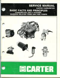 Carter service manual - Basic Facts & Principles - Carburetors and O2 systems, emissions, and fuel pumps. Really good text to understand carburetion principles. 8 1/2 x 11 inches by 30 pages. Excellent condition. Stock number Lit-1038. Price $25.00 |