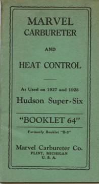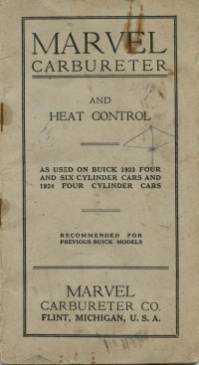 These are booklets that would have been supplied with the purchase of a new car, and contain information about the specific Marvel carburetor used on the car. Typically, these booklets are 3 1/2 by 6 1/4 inches, and will contain from 10 to 24 pages. Information generally would be: construction, adjustments, how to start vehicle, cut-a-way drawings and pictures, one of the cut-a-ways would show Marvel part numbers, a listing of the part numbers, and a current (then) listing of Marvel distributors.