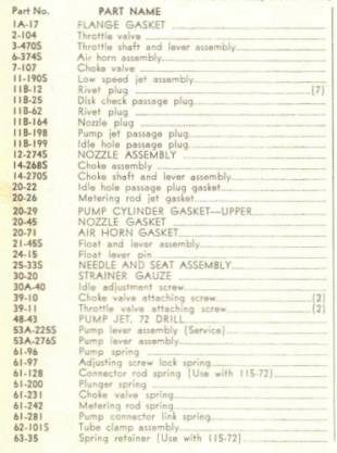 with 115-72) $12. 63-44 Retainer ring - $8. 64-72s Accelerator pump